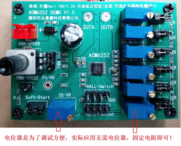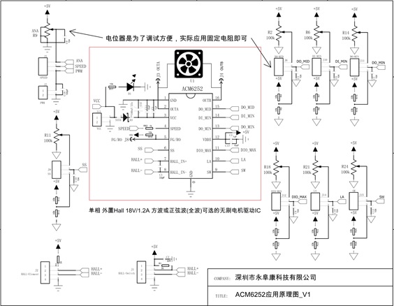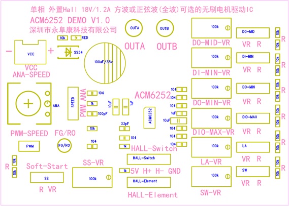 主流的無刷直流電機(jī)的控制方式目前主要有三種:方波控制(也稱為梯形波控制、120°控制、6步換向控制)和正弦波控制、FOC(又稱為矢量變頻、磁場(chǎng)矢量定向控制)。深圳市永阜康科技有限公司現(xiàn)在大力推廣一顆單相正弦波/方波直流無刷電機(jī)驅(qū)動(dòng)IC-ACM6252. 工作電壓3.1V-18V、工作電流1.2A, 可覆蓋大多數(shù)中小功率(<1A)的風(fēng)機(jī)、泵機(jī)類應(yīng)用。