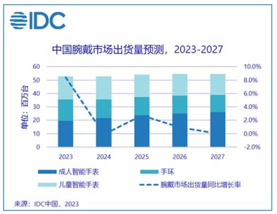 IDC預(yù)計,2024年,成人智能手表將在產(chǎn)品差異化布局的推動下增長11%;兒童手表市場將基本保持穩(wěn)定;手環(huán)在需求已明顯釋放的情況下將有明顯收縮,降幅超過10%。成人智能手表仍然是腕戴市場的重要推動部分,也將在應(yīng)用場景擴展、產(chǎn)品差異化和技術(shù)創(chuàng)新的加持下保持持續(xù)增長。