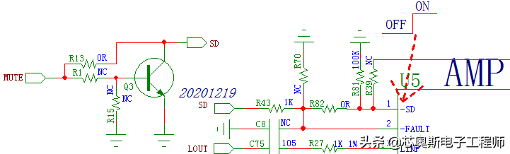 功放高電平工作,低電平關閉。下面電路搭建看上去很復雜,是因為我們這個功放電路還預留了其它功放,小伙伴在搭建的時候,不用完全參考。
