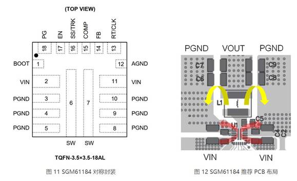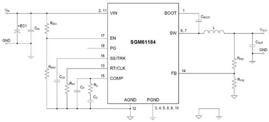 SGM61184 芯片功能豐富,配置靈活,包括使能功能、可調(diào)軟啟動(dòng)、可調(diào)開(kāi)關(guān)頻率、可調(diào)輸出電壓、外置環(huán)路補(bǔ)償、電源正常指示,支持頻率同步、預(yù)偏置啟動(dòng)和完善的保護(hù)功能。該芯片采用符合環(huán)保理念的 TQFN-3.5×3.5-18AL 綠色封裝。