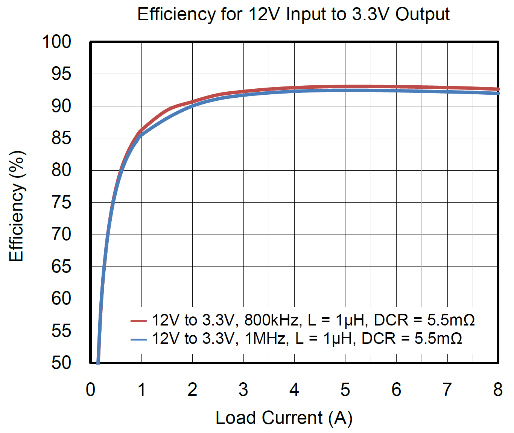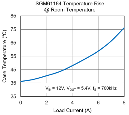 1. SGM61184 集成極低導(dǎo)通阻抗(RDSON)的上下兩個(gè)主開(kāi)關(guān)管(8.6mΩ 和 4.5mΩ),有效提升轉(zhuǎn)換器效率,降低系統(tǒng)能耗,節(jié)省設(shè)備運(yùn)行成本,同時(shí)減小系統(tǒng)溫升,簡(jiǎn)化散熱設(shè)計(jì)。另外,該器件支持最大 +150℃ 結(jié)溫工作,能適應(yīng)較惡劣的溫度環(huán)境。