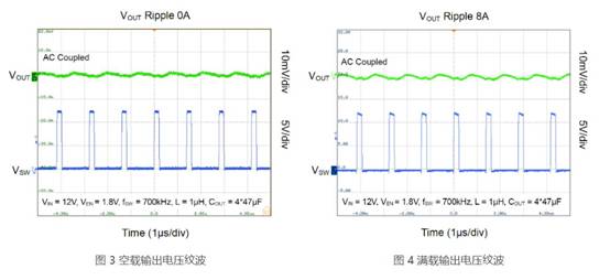 2. SGM61184 采用峰值電流模式控制,開(kāi)關(guān)頻率固定,工作在強(qiáng)制脈寬調(diào)制模式。全負(fù)載范圍內(nèi)保證較小的輸出電壓紋波,非常適用于對(duì)電源紋波和開(kāi)關(guān)頻率抖動(dòng)敏感的應(yīng)用,如通信基站、儀器儀表等。