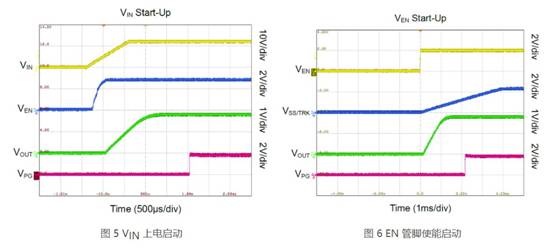 3. SGM61184 內(nèi)置軟啟動(dòng)功能,可減小瞬時(shí)輸入電流沖擊并確保輸出電壓無(wú)過(guò)沖。輸入欠壓閉鎖(UVLO)、使能控制引腳(EN)和電源正常指示(PG)可實(shí)現(xiàn)系統(tǒng)上下電的時(shí)序邏輯控制。