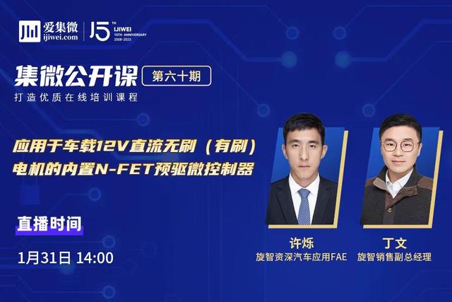 1月31日下午14點(diǎn),集微網(wǎng)舉辦第60期“集微公開(kāi)課”活動(dòng),特邀旋智電子科技(上海)有限公司(簡(jiǎn)稱(chēng)旋智科技)銷(xiāo)售副總經(jīng)理丁文和資深汽車(chē)應(yīng)用FAE許爍,為大家分享主題為” 應(yīng)用于車(chē)載12V直流無(wú)刷(有刷)電機(jī)的內(nèi)置N-FET預(yù)驅(qū)微控制器”的在線(xiàn)直播講解,以闡述該產(chǎn)品的技術(shù)知識(shí)、解決方案和旋智科技研發(fā)的核心功能特性。