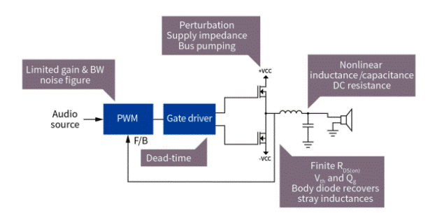 對(duì)于堅(jiān)持使用經(jīng)典放大器拓?fù)漕悇e的用戶,他們的要求將集中在準(zhǔn)確的音頻再現(xiàn)上,而幾乎不考慮解決方案的整體電效率。雖然這在家庭音頻環(huán)境中是完全合理的,但許多應(yīng)用都要求高放大器效率。這可能是為了節(jié)省能源并延長(zhǎng)電池壽命,或者是為了減少散熱,從而使最終產(chǎn)品更致密,更緊湊。