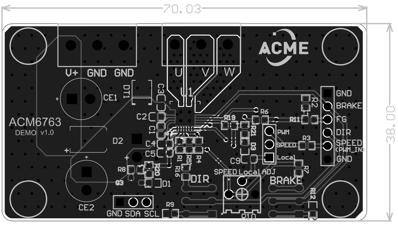 ACM6763是一款全集成、三相無刷直流電機(jī)驅(qū)動芯片,操作電壓4.5V-32V,5A峰值相電流能力,耐壓45V. 內(nèi)部集成三相無刷電機(jī)驅(qū)動算法、功率管以及電流/電壓檢測. 能夠在極簡外圍(只需要6個阻容器 件+1個電阻)的情況下驅(qū)動三相無刷直流電機(jī)。