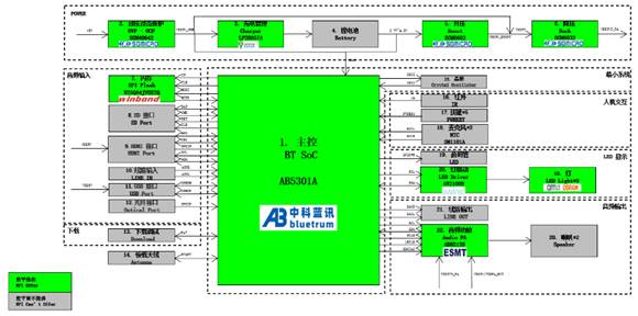 圖示3-大聯(lián)大世平基于中科藍訊產(chǎn)品的藍牙音箱開發(fā)板方案的方塊圖