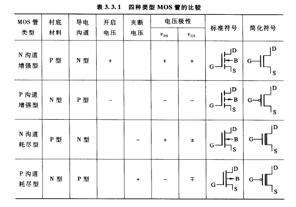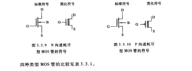 圖3.3.10 是 P 溝道耗盡型 MOS 管的符號。工作時應(yīng)將它的襯底和源極相連,或?qū)⒁r底接至系統(tǒng)的電位上。