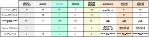 下圖(圖11)為ADI Sharc DSP產(chǎn)品選型對比表: