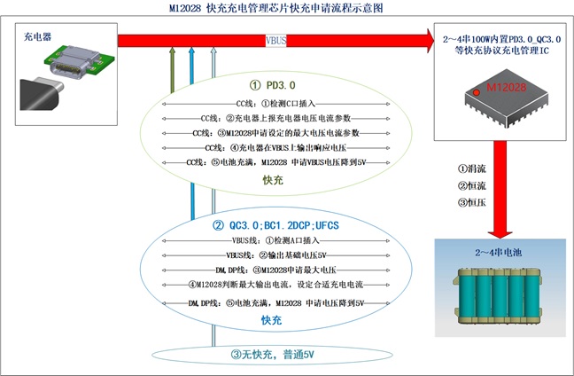 M12028 快充充電管理芯片快充申請(qǐng)流程示意圖