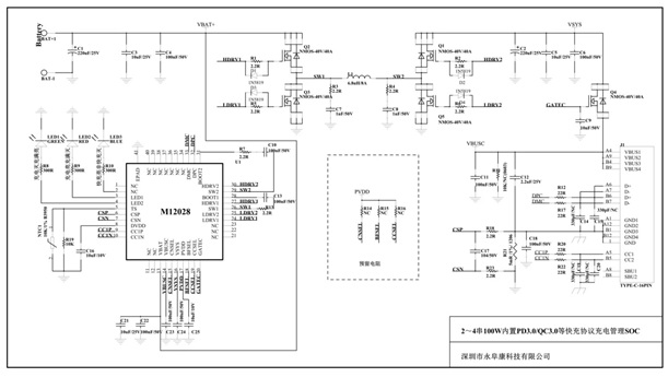 取電協(xié)議芯片與充電頭(Source) 進(jìn)行協(xié)商,Type-C通過(guò)控制信號(hào)輸出協(xié)商電壓,然后充電管理多串鋰電池或其它類型電池充電。深圳市永阜康科技有限公司現(xiàn)在大力推廣內(nèi)置PD3.0/QC3.0等主流快充協(xié)議2-4節(jié)100W升降壓鋰電充電管理芯片M12028,可支持2-4串鋰電池快速充電,滿足多串大容量鋰電池組應(yīng)用場(chǎng)合。高度集成的芯片設(shè)計(jì),外圍元件少,應(yīng)用簡(jiǎn)單,直接使用Type-C充電,無(wú)需專用充電器、避免資源浪費(fèi)。