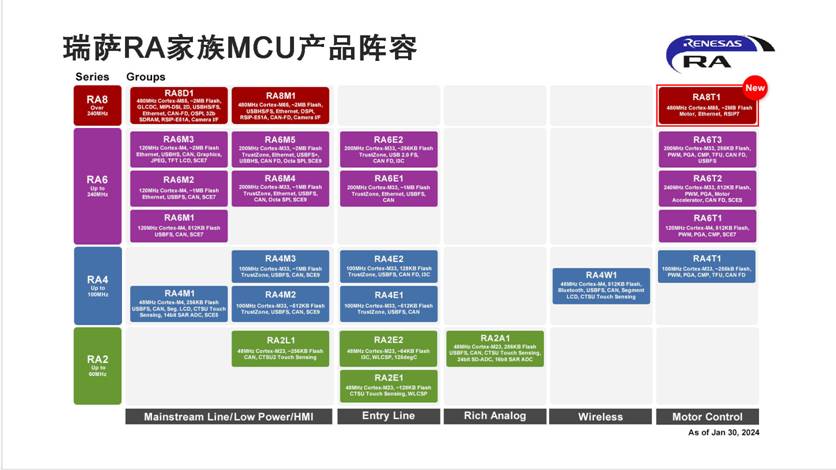 瑞薩RA家族MCU產(chǎn)品陣容