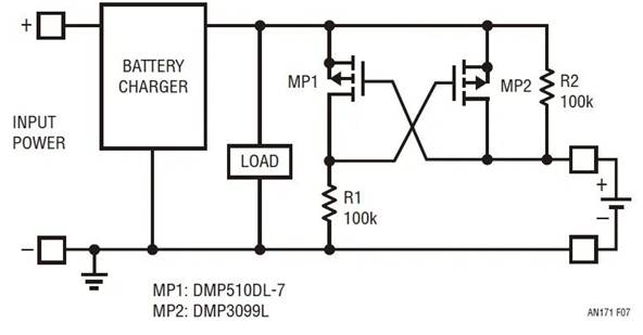 請注意,不論什么情況,電池充電器和負(fù)載電壓都不會出現(xiàn)負(fù)電壓傳送。