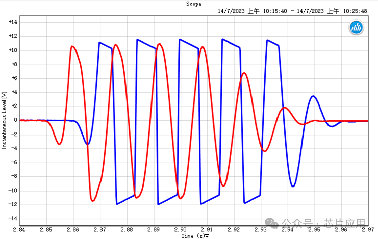 例如下圖,藍色是傳統(tǒng)DRC(RMS DRC)的瞬態(tài)輸出波形,紅色是RMS+Peak DRC的瞬態(tài)輸出波形。