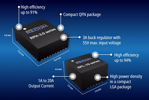 RECOM提供高達20A電流的新型 RPL 與 RPH 系列降壓轉換器