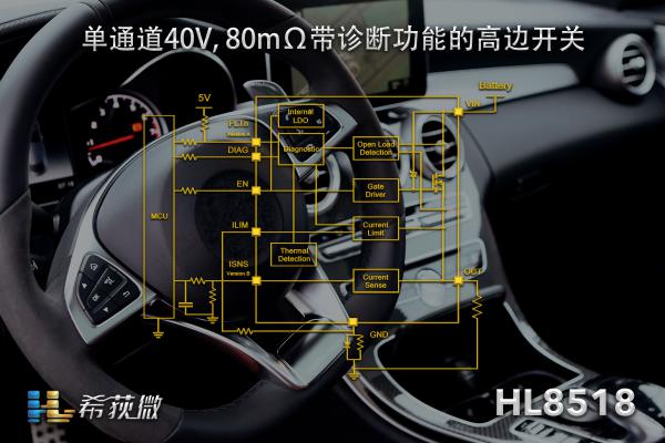 希荻微積極響應(yīng)市場需求,深耕汽車電源市場,持續(xù)研發(fā)并推出DC/DC、LDO、高邊開關(guān)等多個品類的汽車級芯片。最近,希荻微推出一款80mΩ Rds(on)帶電流檢測模擬反饋的汽車級單通道高邊開關(guān)芯片——HL8518,憑借極低功耗、高控制精度和高可靠性的優(yōu)異性能,獲得眾多汽車品牌廠商和一級供應(yīng)商的青睞。該芯片在惡劣的汽車環(huán)境下依然能保持性能穩(wěn)定,有效提升汽車電源控制系統(tǒng)的安全性和可靠性。
