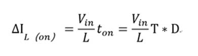 當(dāng)開(kāi)關(guān)管截止,二極管D處于導(dǎo)通狀態(tài),儲(chǔ)存在電感L中的能量提供給輸出,流經(jīng)電感L和二極管D的電流處于減少狀態(tài),設(shè)二極管D的正向電壓為Vf,開(kāi)關(guān)管截止時(shí),電感L兩端的電壓為Vout+Vf-Vin,電流的減少部分△ILoff滿(mǎn)足下式。