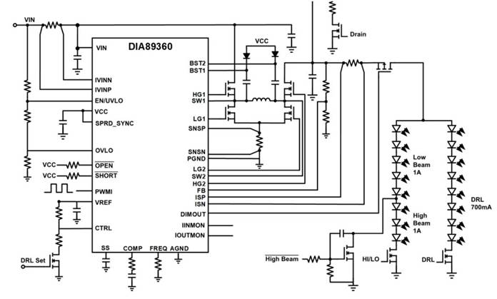 當(dāng)前,汽車前照燈正朝著小型化和高效節(jié)能的趨勢(shì)不斷發(fā)展。隨著燈具尺寸逐漸減小,LED驅(qū)動(dòng)需要具備更大的功率,以確保在有限空間內(nèi)實(shí)現(xiàn)高亮度的照明效果。同時(shí),為了降低整車電耗,緩解電動(dòng)車?yán)m(xù)航焦慮,高效率也成為L(zhǎng)ED驅(qū)動(dòng)產(chǎn)品不可或缺的特性。帝奧微最新推出的LED驅(qū)動(dòng)DIA89360完美契合了這一發(fā)展趨勢(shì),將小型化和高效節(jié)能融為一體,為汽車前照燈的未來(lái)發(fā)展提供了完美的解決方案。