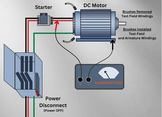 圖4.直流電機(jī)的典型兆歐表測(cè)試布局。圖片由控制自動(dòng)化工程團(tuán)隊(duì)提供