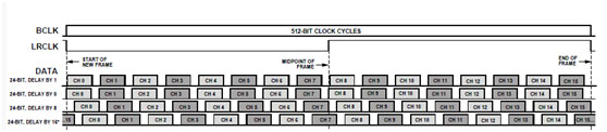 另外,它的對齊方式和電平方式也和 IIS 的類似。下圖(圖2)為某芯片的 TDM16 的協(xié)議:
