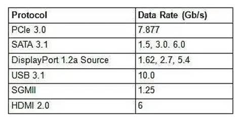 協(xié)議 數(shù)據(jù)速率 (Gb/s) PCIe 3.0 7.877 SATA 3.1 1.5, 3.0. 6.0 DisplayPort 1.2a Source 1.62, 2.7, 5.4 USB 3.1 10.0 SGMII 1.25 HDMI 2.0 6 表 1:一些常見的高速串行接口
