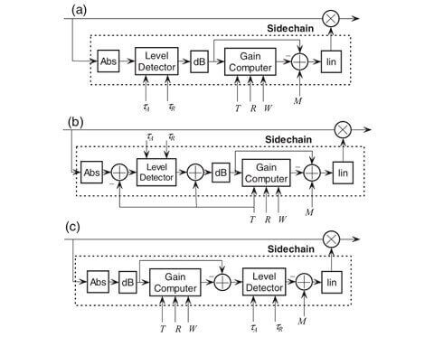 一般DRC包含分頻,擴(kuò)位,峰值/均值檢測(cè),啟動(dòng)和釋放平滑增益控制等,常見(jiàn)動(dòng)態(tài)范圍壓縮的框圖如下。