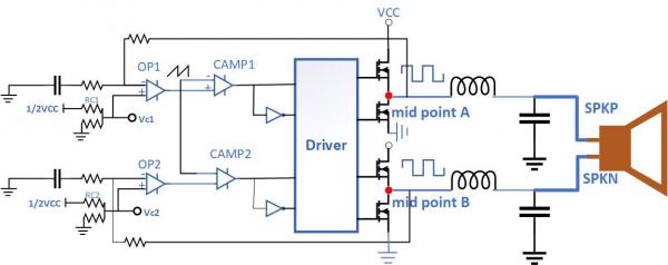 在預補償之前,Vb可能為正或負。例如,SPKN>SPKP,那么需要調整Vc1>Vc2直到減去Vb的值。