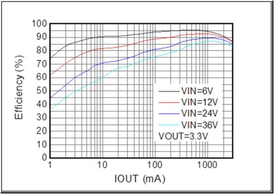 Vin=12V, Vout=3.3V,I out=0.3A~3A 時(shí) VPP<200mV