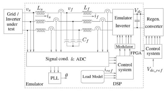 所提出的負(fù)載仿真器配置具有三相電網(wǎng)或三相電壓源逆變器(VSI)作為電源。電源電壓的相位角對于操作至關(guān)重要,并使用鎖相環(huán) (PLL) 方法進(jìn)行跟蹤。電源的三相電壓作為 PLL 的輸入,并產(chǎn)生與電源頻率相同的正弦信號。負(fù)載仿真的實現(xiàn)使得重要算法生成所需的電流來模擬實際負(fù)載,并作為系統(tǒng)的主要組件。然后,控制系統(tǒng)確保 VSI 汲取或提供接近所需參考電流的電流。