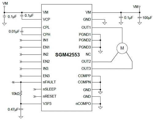 SGM42553 45V/3A峰值電流的三相半橋驅(qū)動(dòng)芯片