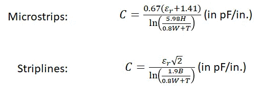 在上述特定配置中,走線電容是相對于最近的接地平面定義的。最后,我們得到兩個分別用于計算微帶線和帶狀線走線電感的公式。