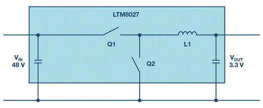 圖1. 通過單一轉(zhuǎn)換步驟將電壓從48 V降至3.3 V