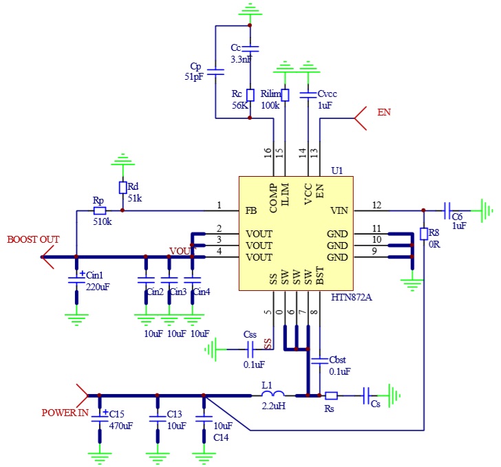 HTN872A具有2.7V至20V寬輸入電壓范圍, 可為采用單節(jié)或兩節(jié)鋰電池的應用提供支持。 該器件具備20A開關電流能力,并且能夠提供20V的輸出電壓。