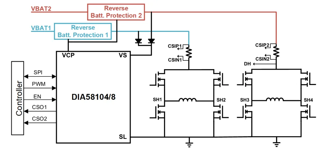 DIA58104/8是帝奧微最新推出的多通道半橋預(yù)驅(qū)系列,采用7mm x 7mm的QFN封裝,可控制多達8個半橋(最多16個n溝道MOSFET),為系統(tǒng)提供簡單、緊湊且具成本效益的驅(qū)動方案。其目標(biāo)應(yīng)用包括汽車直流電機,例如電動座椅模塊、尾門模塊和車身系統(tǒng)電動閉合模塊等。