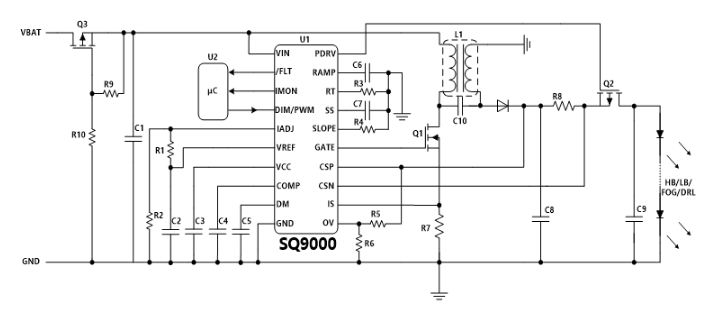 SQ9000是一款車規(guī)級(jí)LED驅(qū)動(dòng)控制器,采用高精度峰值電流控制模式可支持BUCK、BUCK-BOOST、SEPIC、BOOST等拓?fù)浣Y(jié)構(gòu)的應(yīng)用。這款控制器具備 4.5V 至 65V 的極寬輸入電壓范圍,支持開關(guān)頻率外部可設(shè)置,以及具備抖頻調(diào)制技術(shù),展現(xiàn)出卓越的EMI性能。