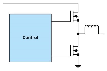 圖1展示了開關(guān)模式降壓轉(zhuǎn)換器(降壓技術(shù))中常用的半橋配置功率級(jí)。在此配置中使用GaN開關(guān)時(shí),必須考慮到,與硅基開關(guān)相比,GaN開關(guān)的最大柵極電壓耐受值通常較比較低。因此,在驅(qū)動(dòng)過程中嚴(yán)格遵守最大柵極電壓限制至關(guān)重要。