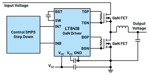 圖2.LT8418,一款用于GaN開關(guān)的100 V半橋驅(qū)動(dòng)器。