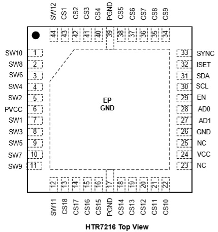 HTR7216(S)的工作電壓在2.7V到5.5V之間,并且關(guān)斷電流和工作電流都非常小。HTR7216支持QFN5×5-44L封裝,可在2.7V到 5.5V和-40°C to +125°C下工作。