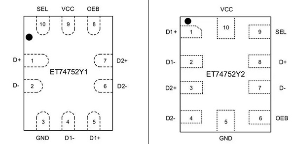 ET74752是力芯微推出的高性能DPDT USB 2.0開關(guān)芯片,集成過壓保護(hù)(OVP)和浪涌防護(hù)功能,專為智能設(shè)備接口安全設(shè)計(jì)。支持480Mbps高速傳輸,帶寬達(dá)1GHz(單端)。其核心優(yōu)勢(shì)在于多重保護(hù)機(jī)制:當(dāng)檢測到D+/D-引腳電壓超過5.1V時(shí),OVP功能自動(dòng)切斷通路,可耐受24V DC輸入;同時(shí)支持35V浪涌防護(hù),有效保護(hù)下游電路。