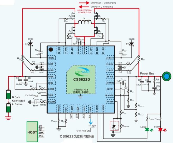 CS5622D支持雙向輸出。通過DIR管腳即可控制工作方向。它同時支持包括輸入限流、輸出限流、輸出過壓保護(hù)、短路保護(hù)以及過溫保護(hù)等一系列保護(hù)功能,以確保系統(tǒng)能適應(yīng)各種異常情況。
