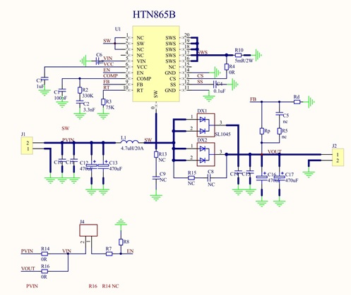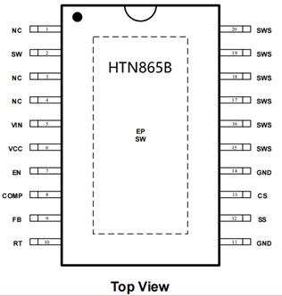HTN865B具有2.8V至36V寬輸入電壓范圍,可為不同應(yīng)用的不同供電方式提供支持。該器件具備20A開關(guān)電流能力,并且能夠提供高達(dá)36V的輸出電壓。
