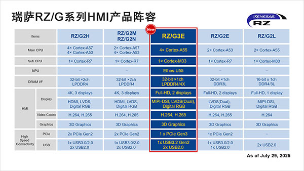 Daryl Khoo, Vice President of Embedded Processing at Renesas表示:“RZ/G3E在RZ/G系列成熟性能的基礎(chǔ)上,增加了NPU以支持AI處理。通過(guò)使用與我們最近發(fā)布的RA8P1微控制器相同的Ethos™-U55 NPU,我們?yōu)锳I開(kāi)發(fā)提供了可擴(kuò)展的路徑。這些增強(qiáng)功能憑借強(qiáng)大的AI能力,滿(mǎn)足下一代HMI應(yīng)用在視覺(jué)、語(yǔ)音和實(shí)時(shí)分析方面的需求。”