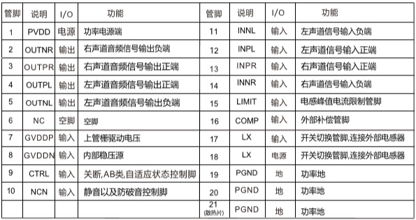 管腳排列及定義
