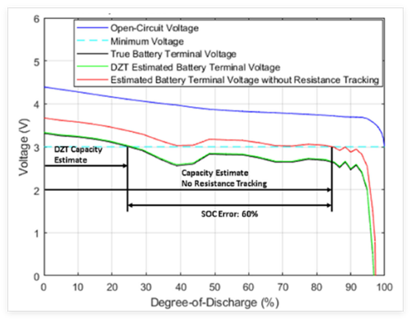 當(dāng)不穩(wěn)定或高頻負(fù)載影響電池時(shí),阻抗跟蹤測(cè)量儀對(duì)電池的傳統(tǒng) RC 建模將無法更新電池電阻。動(dòng)態(tài) Z-Track 算法實(shí)現(xiàn)了一個(gè)寬帶瞬態(tài)模型,該模型可以模擬電壓瞬態(tài)并適應(yīng)動(dòng)態(tài)電流曲線。即使電流不穩(wěn)定,這種方法也能實(shí)時(shí)估算電阻。
