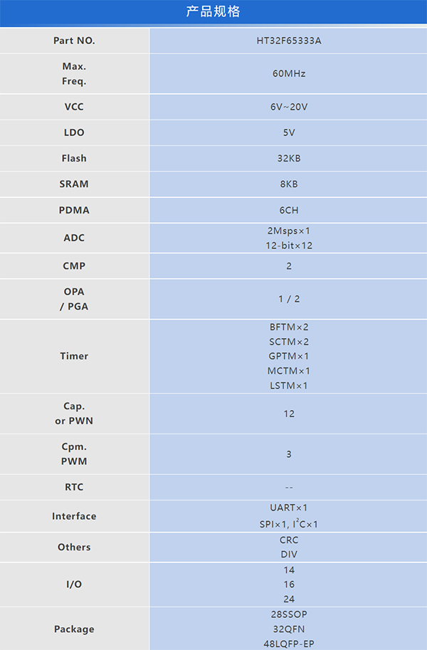HT32F65333A 內(nèi)建26V P/N預(yù)驅(qū)BLDC單片機