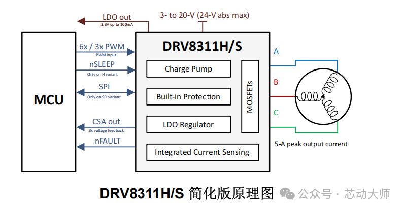 4.5V-32V、5A三相無刷無感驅(qū)動、180˚正弦,集成驅(qū)動算法+預驅(qū)+MOS |