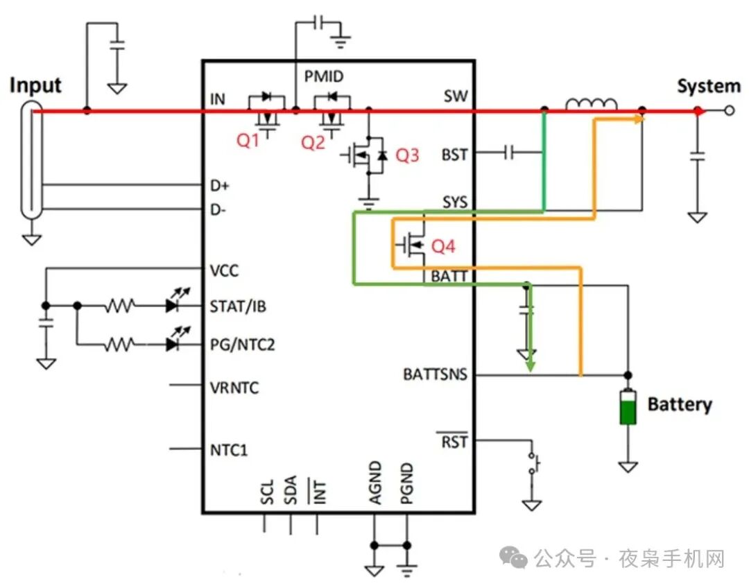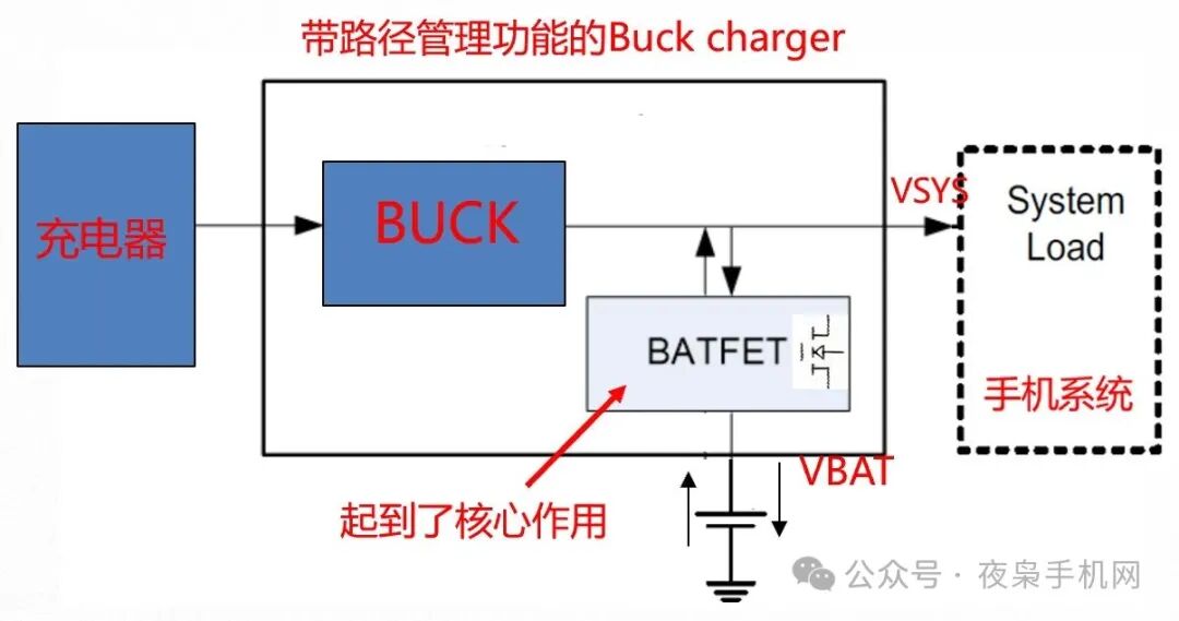 如果問手機(jī)上的Buck charger有什么獨(dú)特之處,那么路徑管理功能(Power Path Management)便是繞不開的一個(gè)話題。路徑管理功能決定了電能如何在充電器、電池和系統(tǒng)供電這三者之間高效、安全地流動(dòng)。