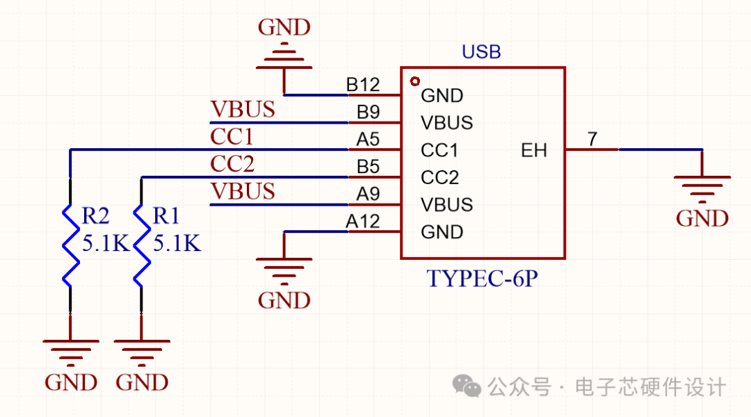 當(dāng)多個(gè)設(shè)備或端口連接時(shí),下拉電阻確保 CC 引腳在無(wú)主動(dòng)控制時(shí)處于確定狀態(tài),防止多個(gè)上拉或下拉電路導(dǎo)致的電平?jīng)_突。