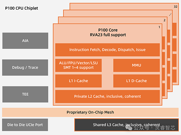 可擴(kuò)展:P100支持“融合計算“架構(gòu),提供了強(qiáng)大的自定義指令擴(kuò)展接口,可無縫集成專用加速單元,在流水線層面實現(xiàn)專用算力、AI算力與通用算力的深度融合,為客戶構(gòu)建高效、靈活、貼合業(yè)務(wù)特性的領(lǐng)域增強(qiáng)計算方案提供高能效基座。