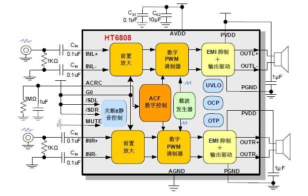 當(dāng)前位置:首頁(yè)->產(chǎn)品展示->功放IC->HT6808(防破音功能的3W雙聲道、6W單聲道D類(lèi)功放IC) |